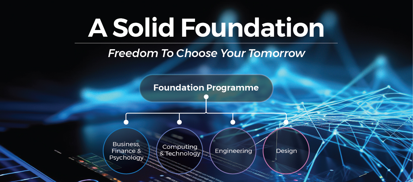 The study modules for the Foundation Programme lead to four major pathways – Business, Finance and Psychology; Computing and Technology; Engineering; and Design. Study areas that are covered by the above four major pathways are Business and Management, Marketing, Digital Marketing, Tourism, Accounting, Finance, Banking, Actuarial Studies, Media and Communication, Psychology, Computing and Technology, Games Development, Engineering, Industrial Design, Visual Effects, Animation, Digital Advertising and more.